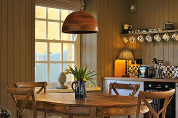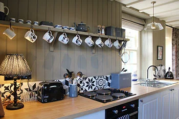 On the ground floor, Manderley has an open-plan sitting room and dining area with a fuel effect stove, large windows overlooking the green, two comfortable seating areas and a sociable kitchen-dining area, equipped with everything you might need!